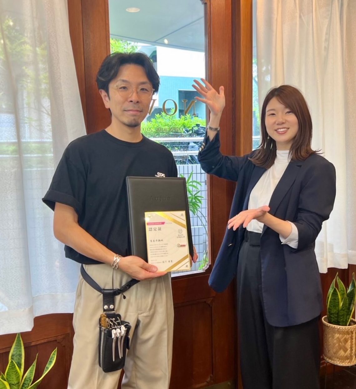 認定が決まった日、MILBONの方がバッジと盾をサロンに届けてくれました。実物を手にしたとき、「あぁ、やっと形になったんだな」とじんわり嬉しさが込み上げてきました。講習に通った時間や練習を重ねた日々がよみがえって、少しホッとした気持ちにもなりました。