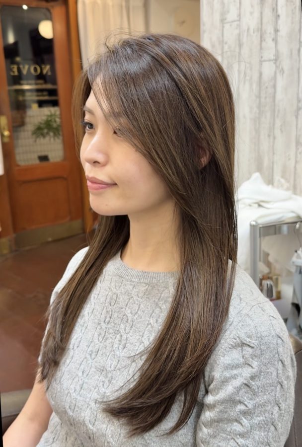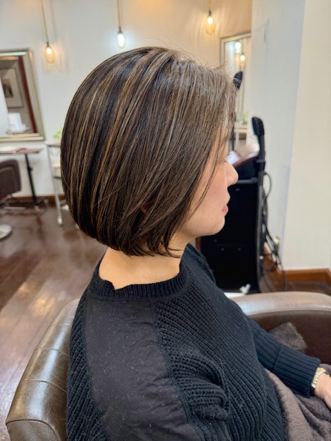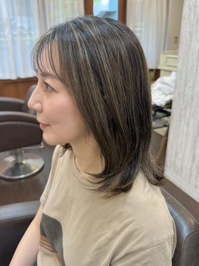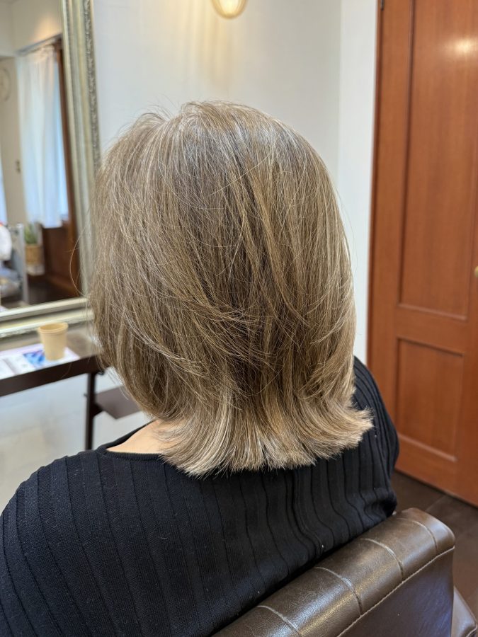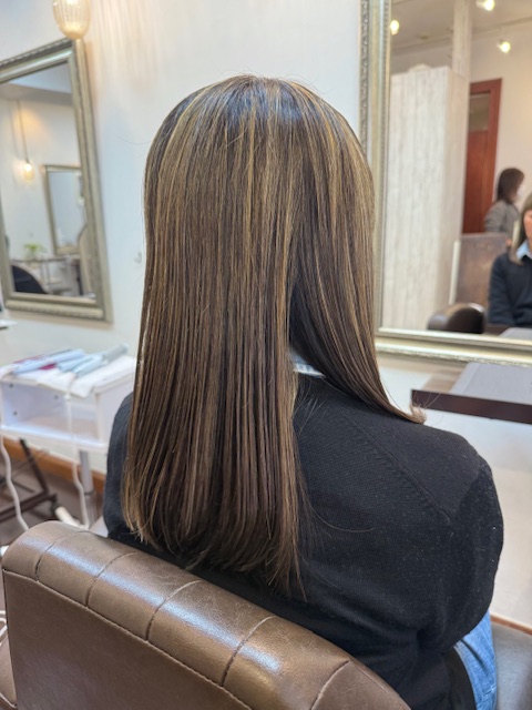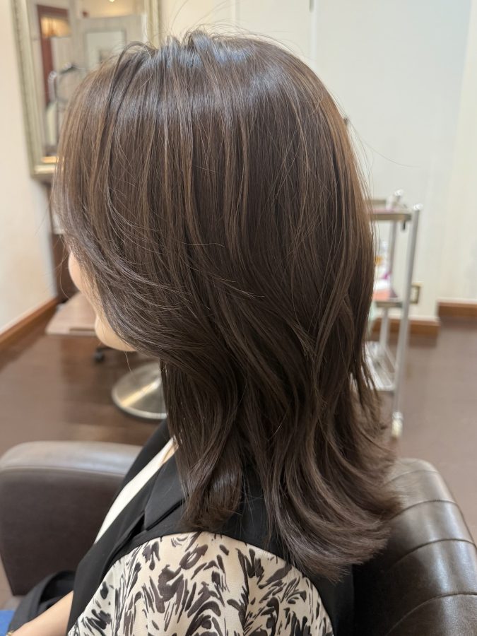 お客様ヘアなので正面の写真は載せにくいのですが、色味やハイライトの雰囲気。ヘアスタイルの全体のフォルムや長さの具合は伝わると思います💡