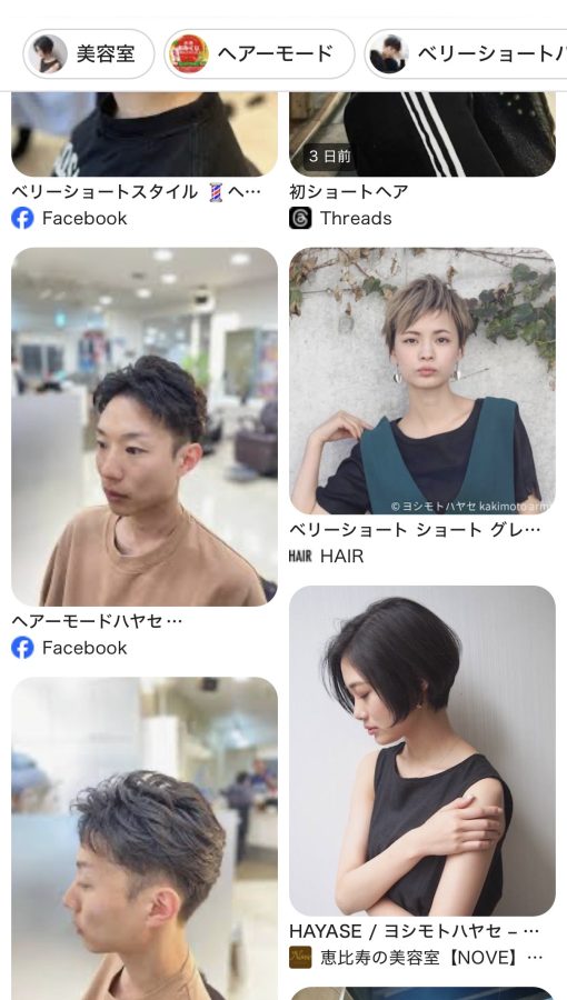 私のショートヘアがトップ画面に2スタイル出てきます✂